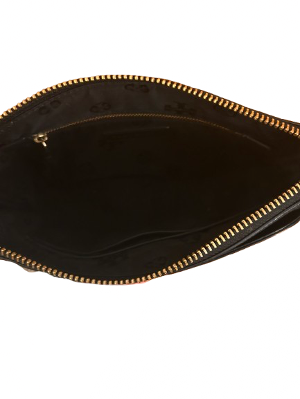Authentic Tory Burch crossbody in supple black leather, featuring the signature chain strap for effortless elegance. This pre-loved piece showcases excellent overall condition with only minor wear consistent with careful use. The structured silhouette and quality craftsmanship make it a versatile addition to any wardrobe. Perfect for those seeking luxury with a conscious approach to fashion.
